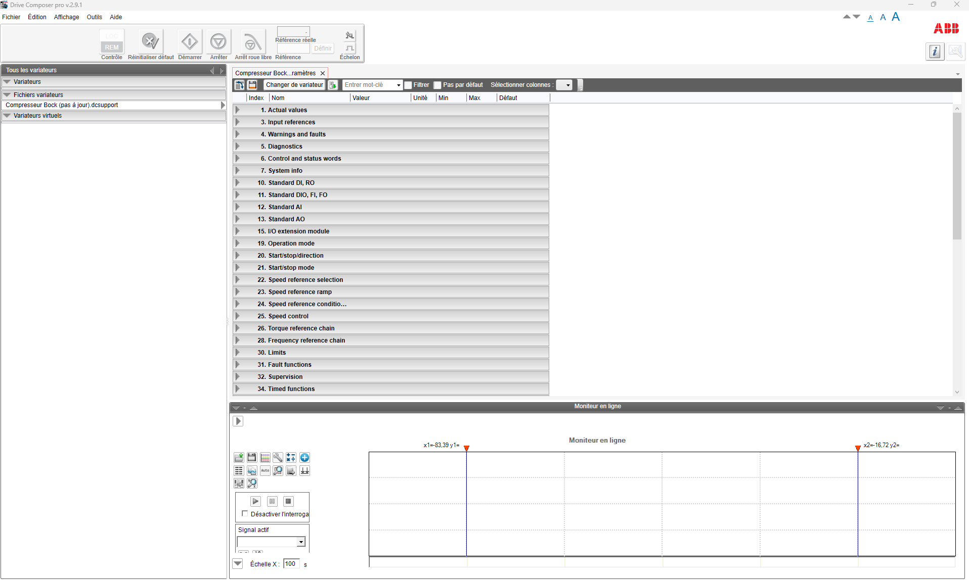 Drive composer est un outil de démarrage et de maintenance pour les variateurs ABB d’architecture commune. Il est utilisé pour afficher et régler les paramètres du variateur, et pour contrôler et optimiser la performance du processus.